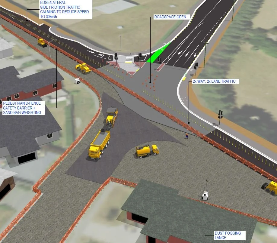These models offer a clear alternative to complex 2D TMPs and civil staging drawings, allowing audiences to instantly understand site logistics without piecing together multiple drawing disciplines. Our models comply with New Zealand’s latest traffic management standards (COPTTM).